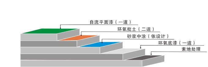 ④環氧中涂:將環氧樹脂地坪漆加入適量的石英砂,用鏝刀將其均勻涂布數道;
